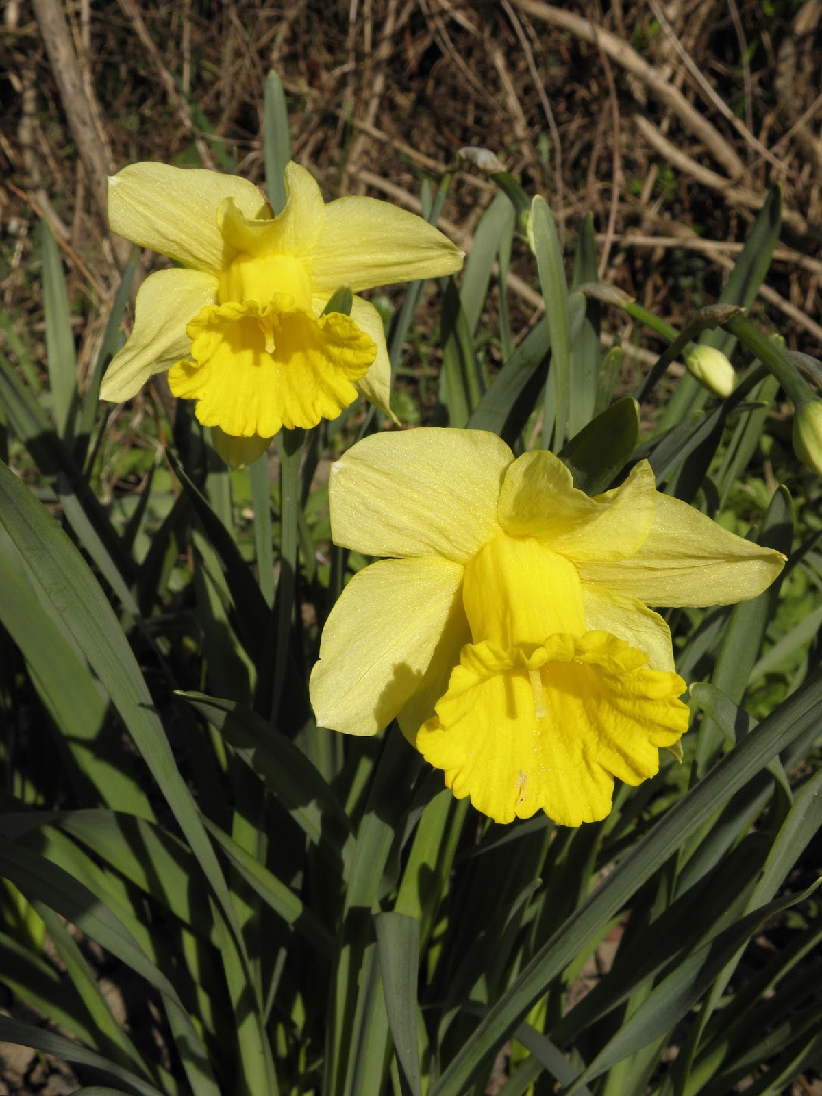 | Többféle nárcisz nyílik a kertben, évről-évre nagyobb telepet alkotva |